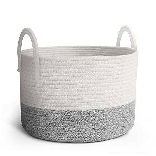 Keplin Small Rope Storage Baskets - Woven Two Tone Material Nursery Hamper with Handles, Large Capacity for Laundry, Baby Clothes, Toys (Grey & White)