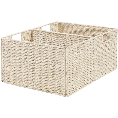 Vagusicc Wicker Storage Basket, Set of 2 Hand-Woven Paper Rope Wicker Basket, Small Storage Baskets for Organizing Toilet Paper Baskets, Foldable Large Cube Storage Organizer Bin for Shelves (Beige)
