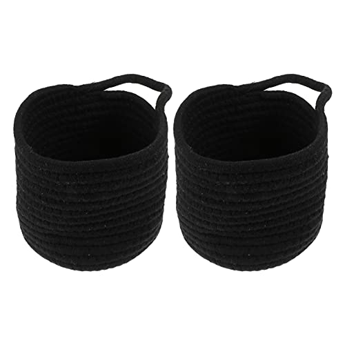 Small Wall Hanging Storage Baskets: 2PCS Cotton Rope Woven Basket - 9 x 7 inch Foldable Wall Door Hanging Organizer with Handle for Flower Plants, Towels, Sunglasses, Wallet, Keys