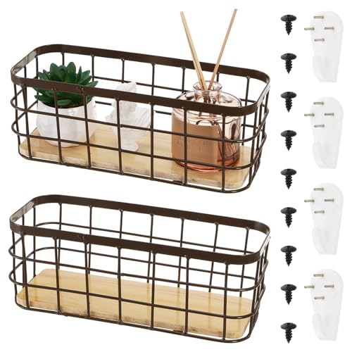 Dicunoy 2 Pack Small Wire Storage Baskets, Narrow Multipurpose Organizer Basket Bin, Farmhouse Rectangle Bathroom Organizer for Kitchen Countertop, Pantry, RV,Office Decorative, 25.5 x 10 x 10cm