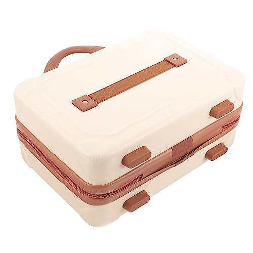 Housoutil Portable Mini Makeup Case for Women, Macaron Color Small Travel Cosmetic Storage Box, Portable Makeup Carrying Suitcase in Light Beige for Travel and Daily Use