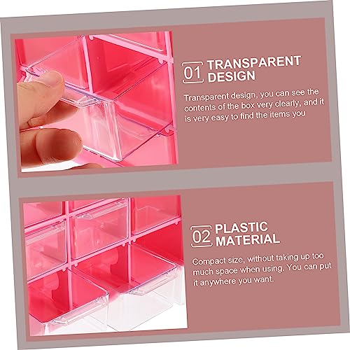 jojofuny 4pcs Drawer Style Small Plastic Storage Boxes with 9-compartment Dustproof Design for Jewelry Beads Cosmetics Organizing, Multi-functional Component Containers for Office