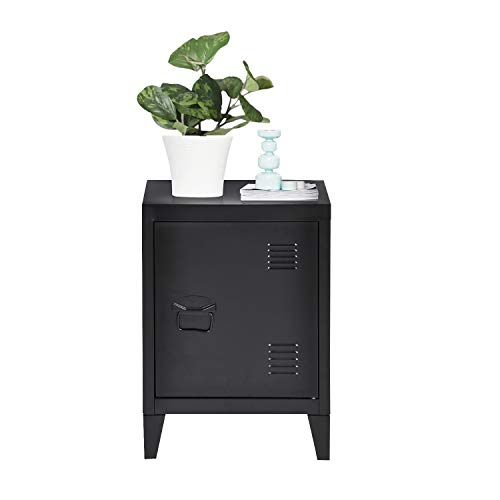 Panana Small Metal Storage Cabinet Industrial Vintage Locker Side Table Bedside Table (Black)