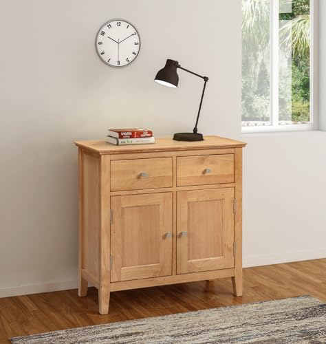 Hallowood Furniture Hereford Oak Small Sideboard Storage Cabinet with 2 Drawers, Cupboard & Adjustable Shelf, Solid Wood Oak Storage Unit for Living Room or Bedroom, Shoe Cabinet for Hallway