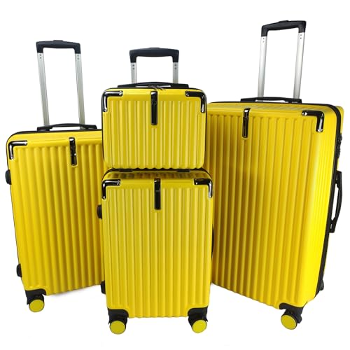 GOODS EMPORIUM Suitcase Set - Cabin Suitcase - Large Medium Small Size Lightweight Suitcases 4 Wheel & Hard Shell - Hand Luggage Bag Flight Carry-ons Travel Cabin Bags (Yellow, Set of 4)