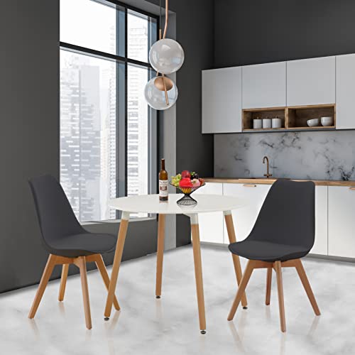 Homcasa Small Round Dining Table and 2 Chairs Set, 90cm White Dining Table and Soft Cushion Pad Chairs with Wood Legs,Dining Room Set of 2 for Home Kitchen Office Meeting (Black*2+90cm Table)