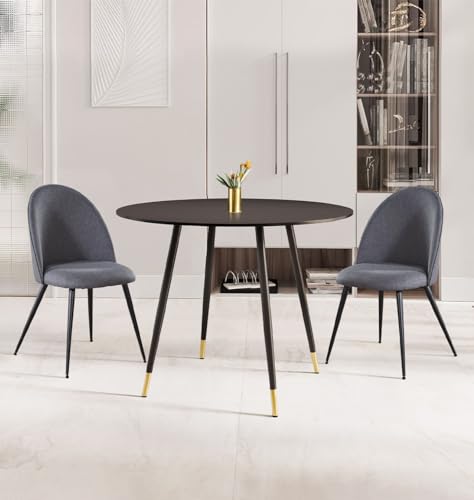 Hallowood Furniture Cullompton Small Round Dining Table and Chairs Set 2, Black Kitchen Table and Chairs Set with Curved-Back Light Grey Fabric Chairs, Dining Room Set for Home and Cafe
