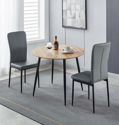 Hallowood Furniture Cullompton Small Dining Table and Chairs Set 2, Brown Oak Effect Top Kitchen Table and Chairs in Grey Faux Leather Upholstery and Metal Legs for Home, Office & Café