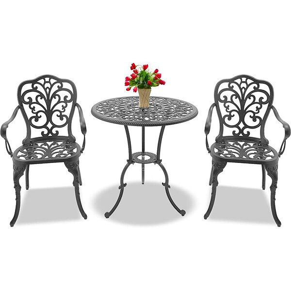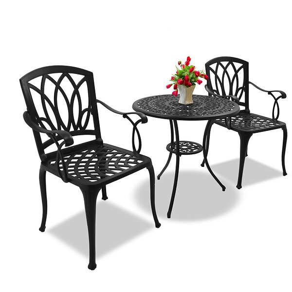 Charles Bentley Furniture 3 Piece Cast Aluminium Bistro Set Table & 2 Arm Chairs