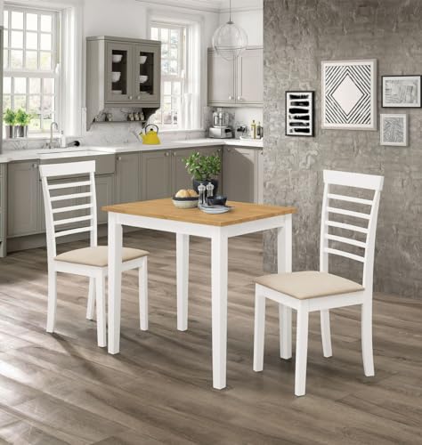 Hallowood Furniture Ledbury Small Table and Chairs for 2, Wooden Painted White Kitchen Table and 2 Chairs with Warm Cream Fabric Seats for Home or Cafe, Space Saving Dining Set for 2