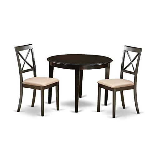 East West Furniture BOST3-CAP-C 3 Piece Kitchen Table Set for Small Spaces Contains a Round Dining Room Table and 2 Linen Fabric Upholstered Dining Chairs, 42x42 Inch, Cappuccino