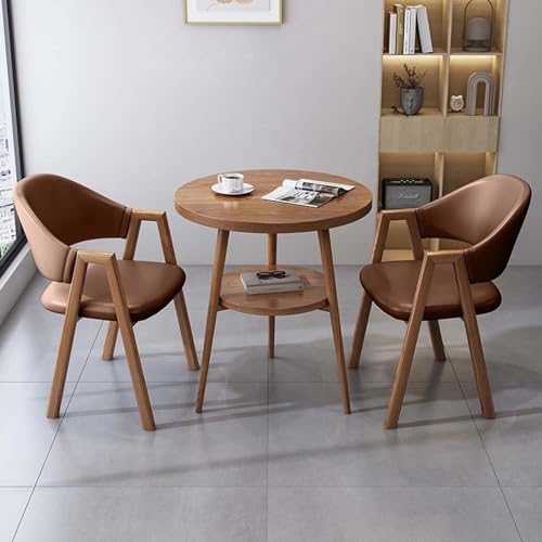 FAXJRU Round Dining Table Set, 3 Piece Small Coffee Table, Reception Negotiation Table,Upholstered Chairs Armchairs,for Kitchen,Office,Faux Leather/Fabric Chairs(Brown B,80cm/31.5in)