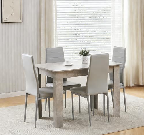 Menaka Modern Wooden Dining Room Table and Chairs Set of 4 for Small Space, 5 Pieces Rectangular Kitchen Table with 4 Chairs (grye table and 4 grey leather chairs)