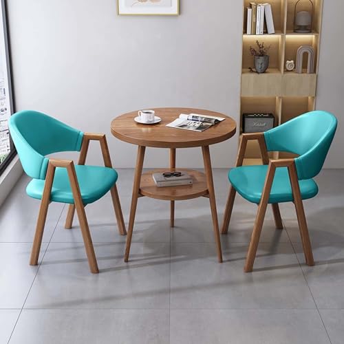 FAXJRU Round Dining Table Set, 3 Piece Small Coffee Table, Reception Negotiation Table,Upholstered Chairs Armchairs,for Kitchen,Office,Faux Leather/Fabric Chairs(Blue B,70cm/27.6in)