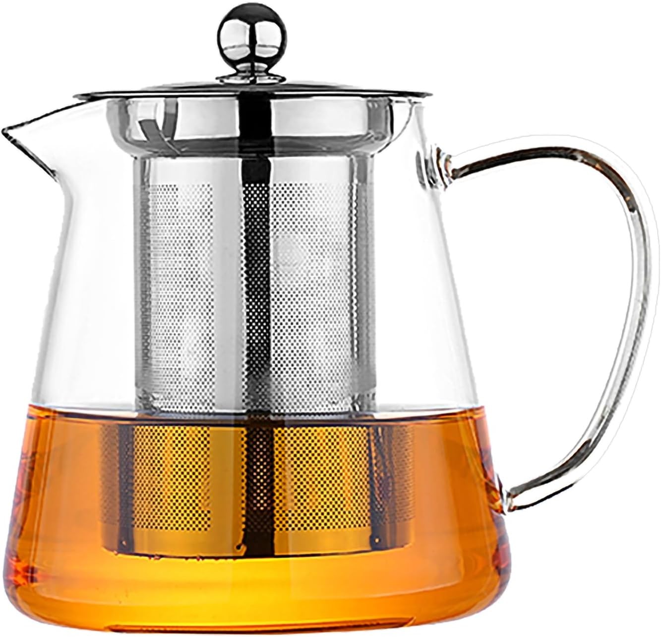 Small Clear Glass Teapot with Infuser,for 1 to 2 People,with Lid,Handle,Straine
