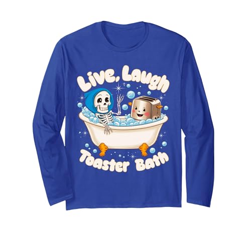 Live Laugh Toaster Bath Skeleton Funny Saying Long Sleeve T-Shirt, Adult Unisex, Royal Blue, Small