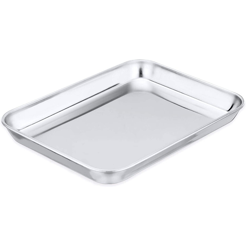 GoXteam Toaster Oven Tray, Stainless Steel Toaster Oven Pan, Rectangle 10.5''x8''x1'', Mirror Finish & Dishwasher Safe, Fit Small Toaster Oven