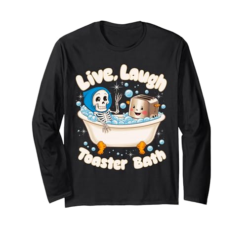 Live Laugh Toaster Bath Skeleton Funny Saying Long Sleeve T-Shirt, Adult Unisex, Black, Small