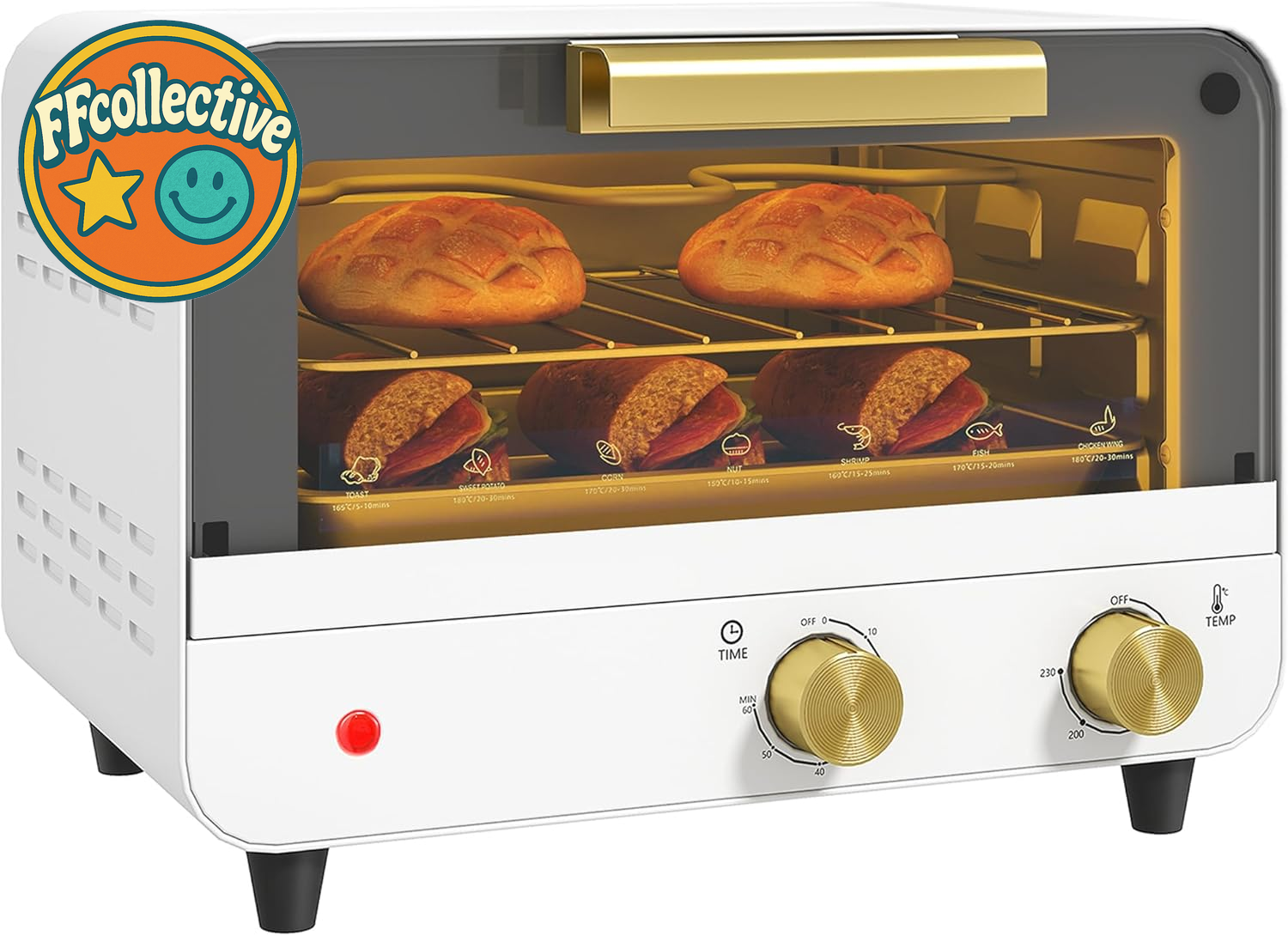 Small Toaster Oven 12L Multifunction Mini Countertop | Adj Temp Timer 750W
