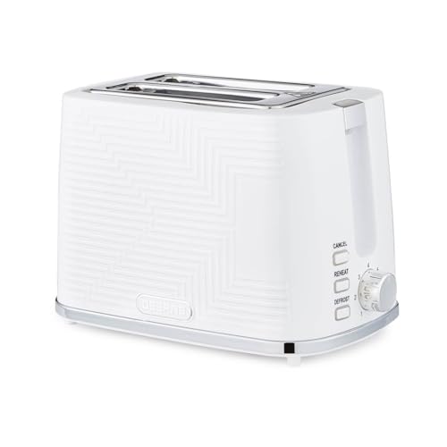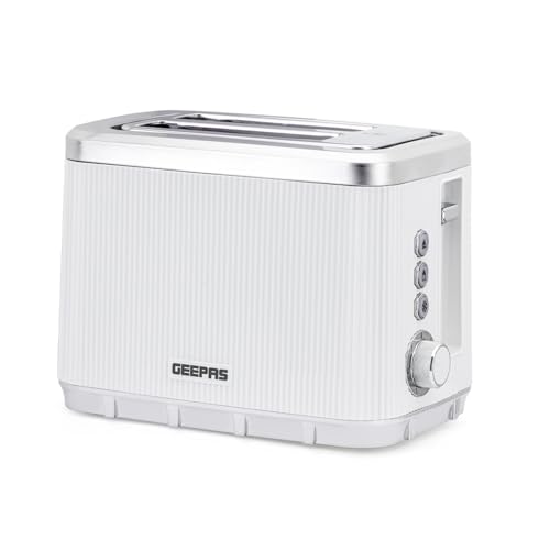 GEEPAS 2 Slice Toaster | 7 Browning Levels Cancel Defrost Reheat | For Thin Small Bread Slice Removable Crumb Tray Cool Touch Housing High Lift Space-Saving Design | 2 Yr Warranty 930W White Arcus