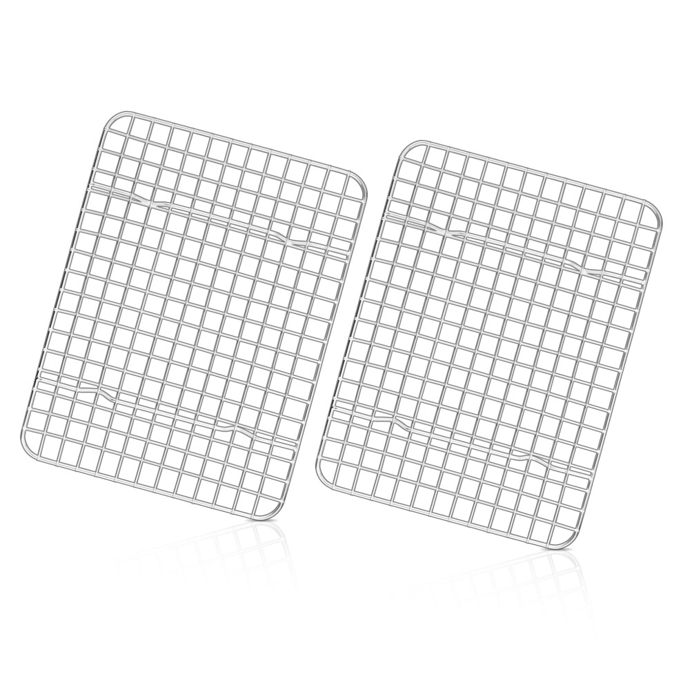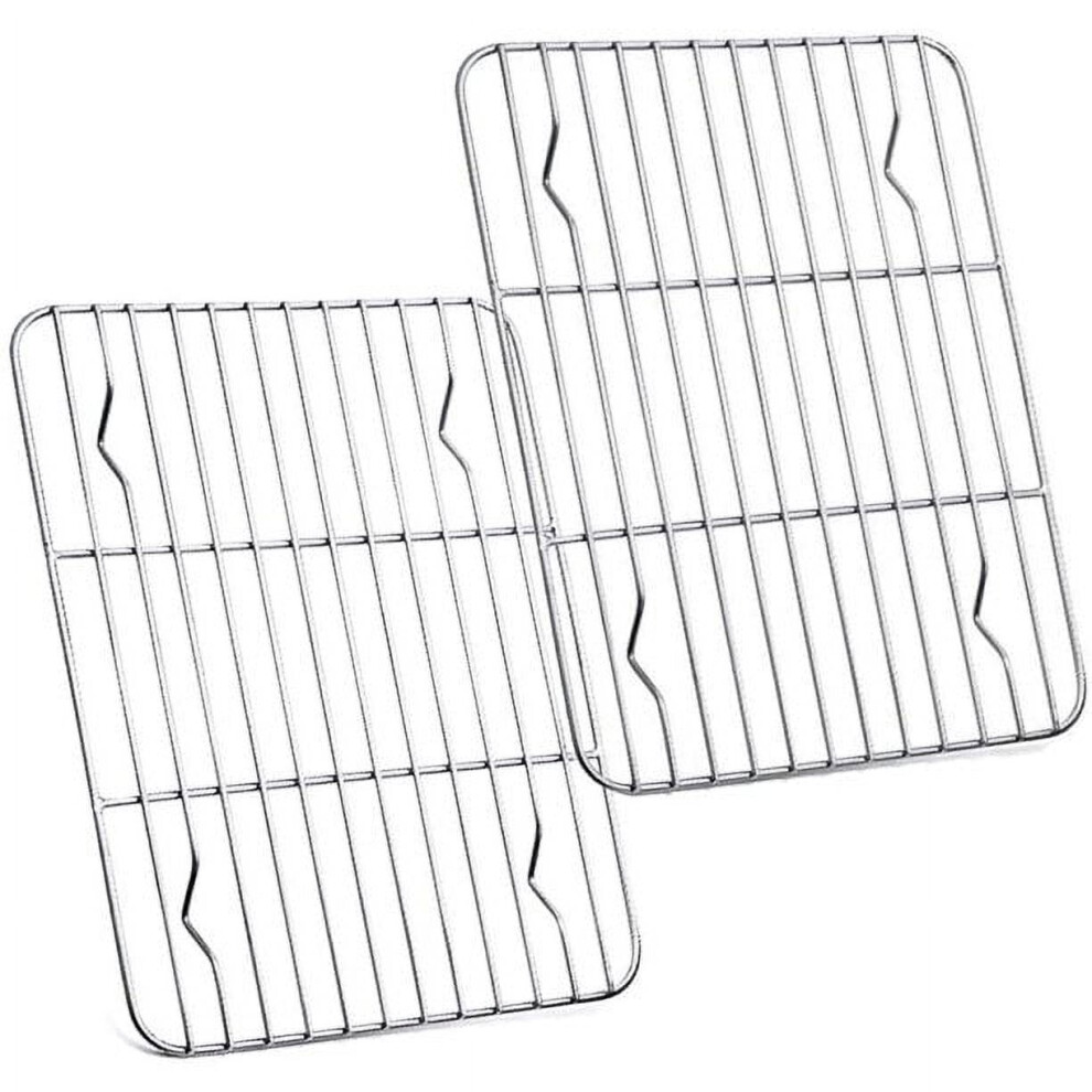 GIXUSIL 2 Pack Stainless Steel Cooling Racks 9.7"x7.3", Compatible with Small Toaster Oven, Non Toxic & Rust Free, Dishwasher Safe (Silver)