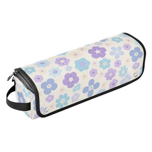 Hair Tools Travel Bag with Heat Resistant Mat Waterproof Portable Open Flat Travel Bag for Hot Tools Curling Iron Flat Irons Hair Volumizer Styler, Small Blue Daisies Travel Essentials for