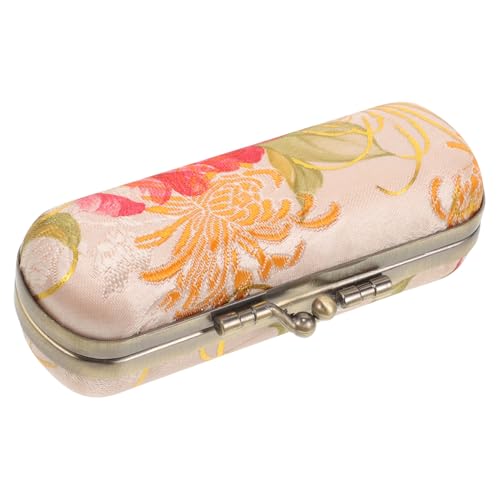 FOMIYES Portable Lipstick Case with Mirror, Embroidered Vintage Cosmetic Bag, Small Purse Lipstick Holder for Travel and Makeup Storage, White Iron Frame with Copper Edging