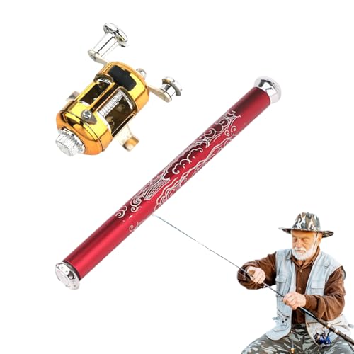 Renopfect Pen Fishing Rod and Reel Combination, Pen Fishing Iron - Telescopic Pole Small Pocket Pole - Folding Pole and Reel Combination, Fishing Accessories for Outdoor Travel, Camping, Daily Trips