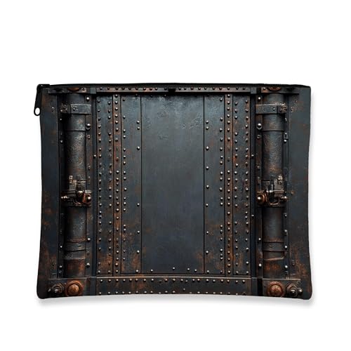 Steampunk Cosmetic Bag, Riveted Iron Industrial Makeup Travel Bags for Women, Portable Small Canvas Zipper Pouch, Halloween Toiletry Bag Organizer, Iron, 7x9 Inch, Iron