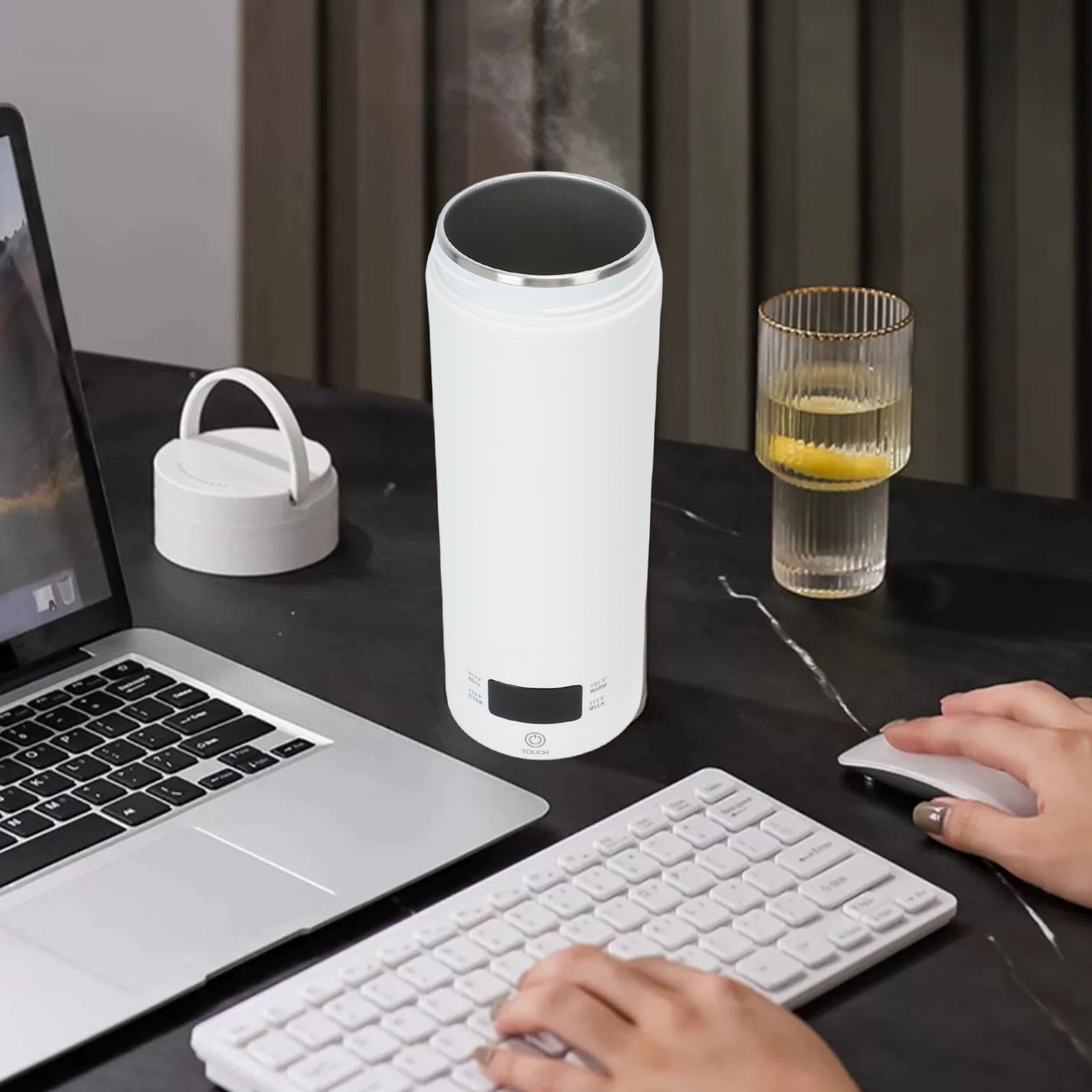 12V~24V Travel Electric Kettle, 400ml Portable Heating Mug with Anti-Spill Lid, Leak-proof, 304 Stainless Steel Liner Small Coffee Tea Cup Up to 100℃ Variable Temp Control Bottle