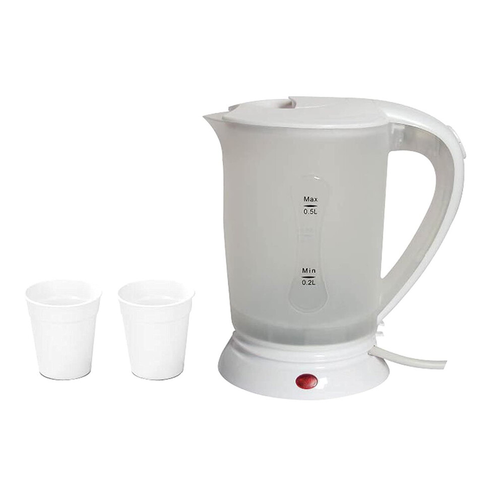 LUXE DIVA? New 0.5LITRE Dual Voltage Small Electric Travel Kettle in White Colour + 2 Cups