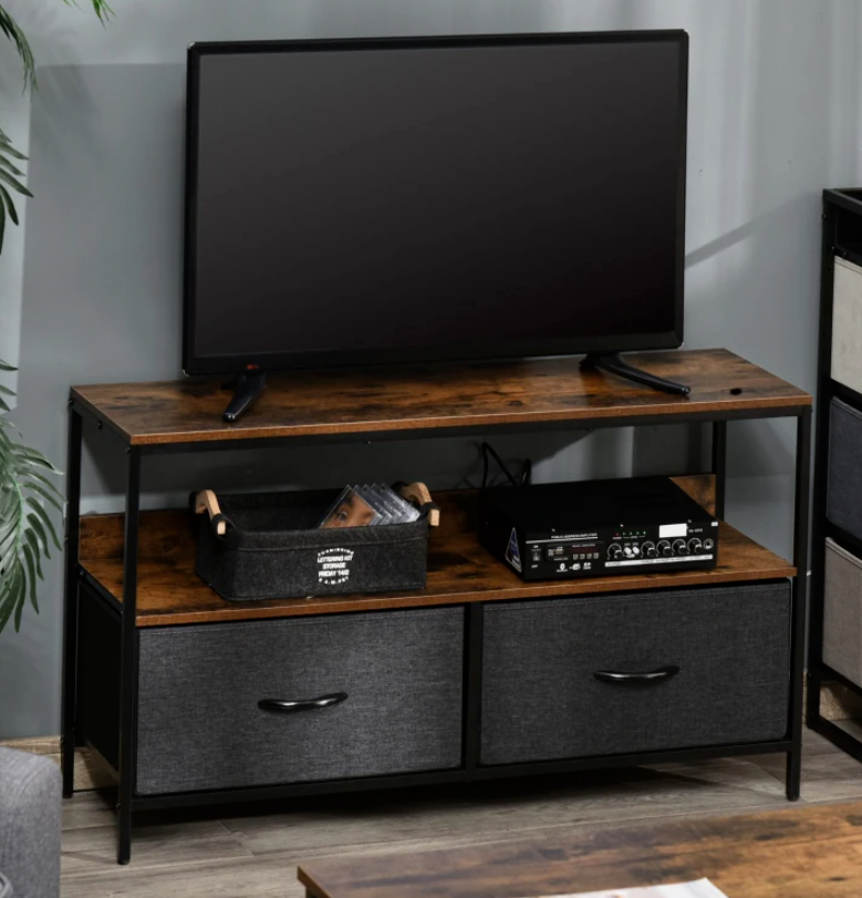 Industrial TV Stand Rustic Storage Cabinet Small Retro Media Shelf Drawers Unit
