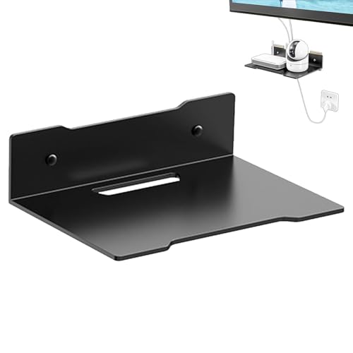 HYTROVE Small Shelf Tv Rack Tv Tops Storage Bracket Black Cold Rolled Steel Wall Mount Storage Organizing Bracket for Routers Cable Boxes