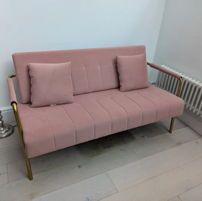 2 Seater Loveseat Modern Pink Velvet Small Sofa Living Room Gold Legs Couch Seat