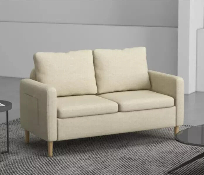 Small Love Seat 2 Seater Sofa Scandinavian Wooden Leg Retro Storage Couch Settee