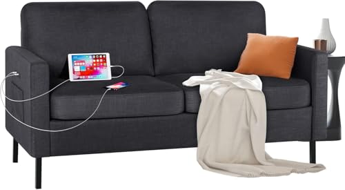 GRAVFORCE Sofa Two Seater Modern Comfy Sofa Couch Loveseat Small Sofas for Living Room Office Apartment Black