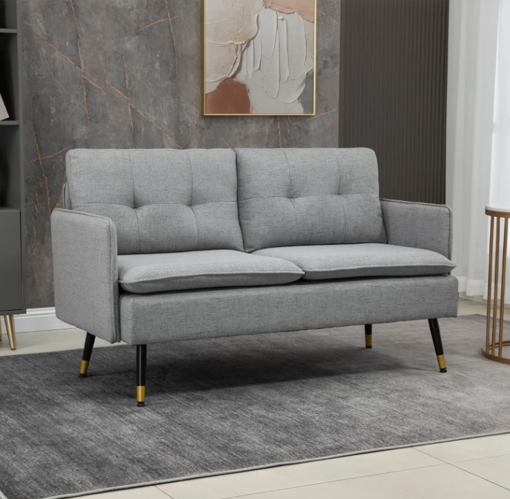 Small Grey Sofa 2 Seater Double Couch Retro Loveseat Modern Compact Fabric Seat