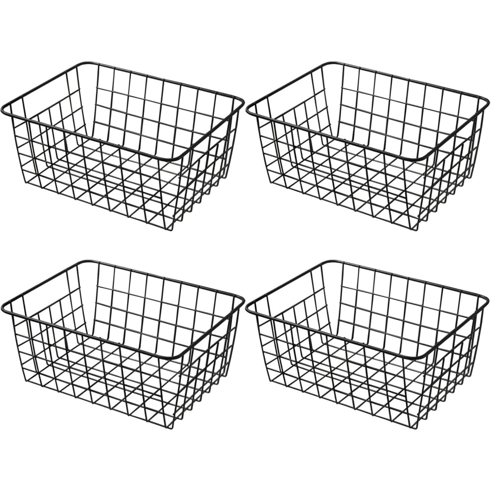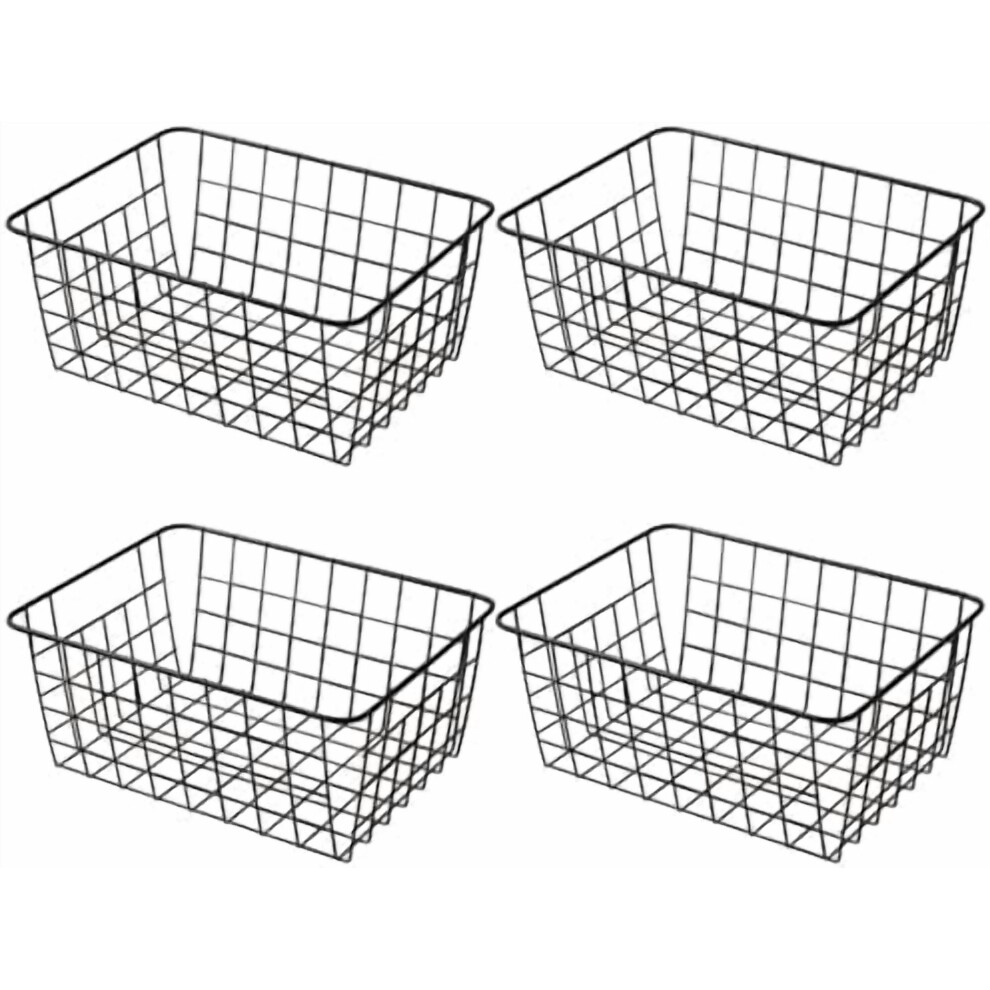 11" Upright Freezer Storage Baskets, Black Wire Storage Bins Small Bakset for Freezer, Pantry, Bathroom Organizing, Set of 4