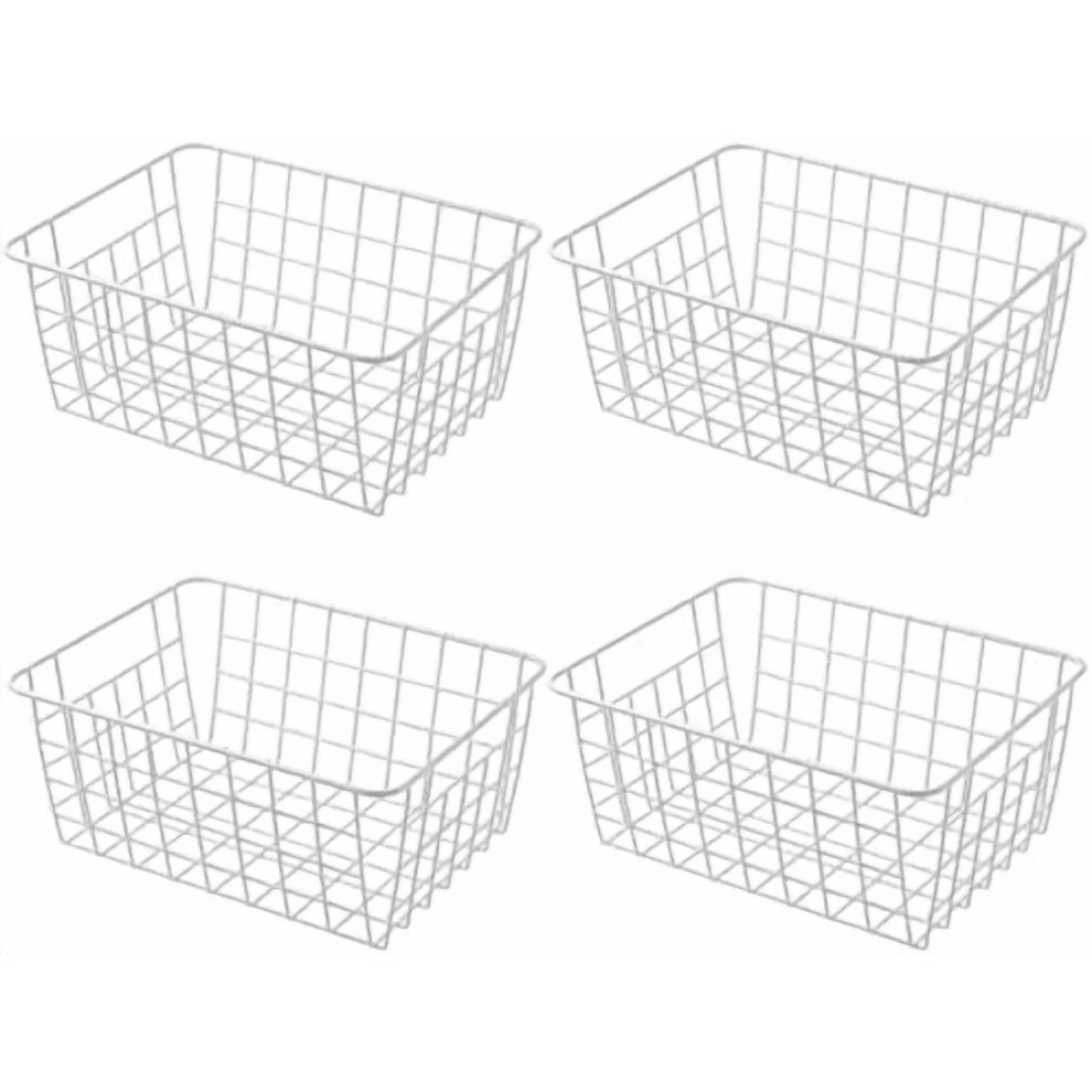 11" Upright Freezer Storage Baskets, White Wire Storage Bins Small Bakset for Freezer, Pantry, Bathroom Organizing, Set of 4