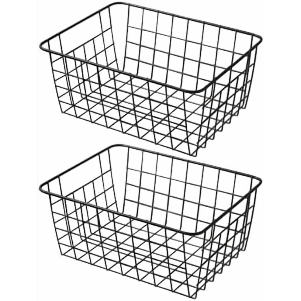11" Upright Freezer Storage Baskets, Black Wire Storage Bins Small Bakset for Freezer, Pantry, Bathroom Organizing, Set of 2