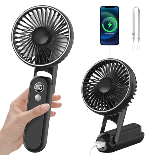 CNMTCCO Portable Handheld Fan, Foldable Mini Fan Rechargeable with 5 Speed Levels, Quiet Small Personal USB Fan with Power Bank (Black)