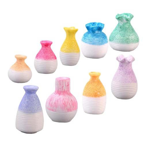 VANZACK 9pcs Miniature House Garden Decorations Set, Resin Small Vases and Simulation Flower Pots, DIY Miniature Vase Accessories for Home and Craft Supplies