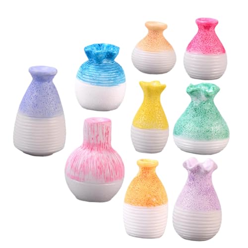BESPORTBLE 9Pcs Miniature Resin Vases Set for Dollhouse Decor, Simulation Mini House Flower Pots and Garden Accessories, Small DIY Mini Vases for Micro Landscape Display