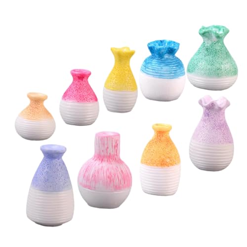 TOPPERFUN 9pcs Miniature Vases Small Resin House Decor for Micro Landscape DIY Miniature Garden Accessories for Home Decoration Flower Pots Fish Tanks and More