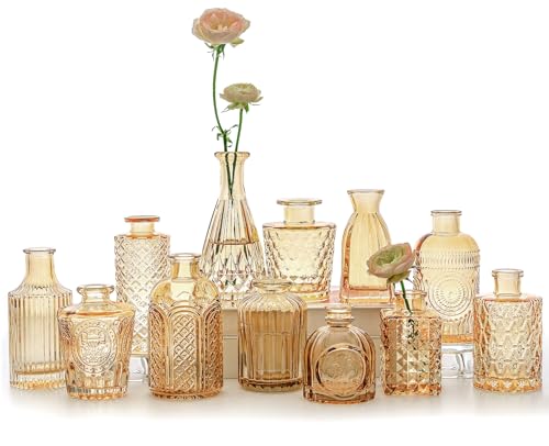SUPMIND 12pcs Glass Bud Vase Set, Small Amber Flower Vases for Centerpieces in Bulk, Mini Vintage Vase for Wedding, Home,Table Decoration