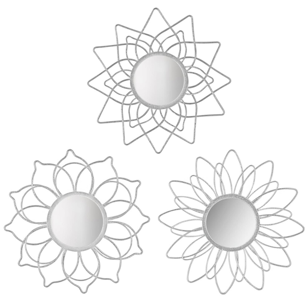 Manortang Silver Mirrors for Wall Metal Flower Mirrors Home Decoration Wall Art Decorative Mirror Small Wall Mirror for Living Room Bedroom Bathroom