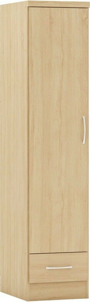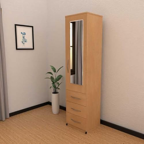 Assembled Modern Small White Wardrobe with Mirror Door, 3 Drawers, 184cm Height, Free Standing (Oak)