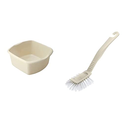 Addis 510583, 8 Litre Small Rectangular Bowl, Linen Cream 8L & Jumbo Washing Up Dish Brush, Linen