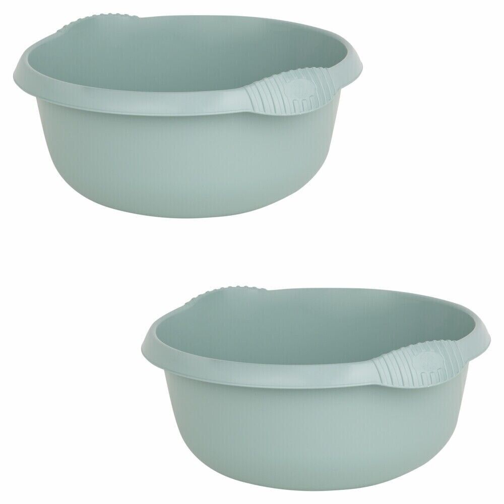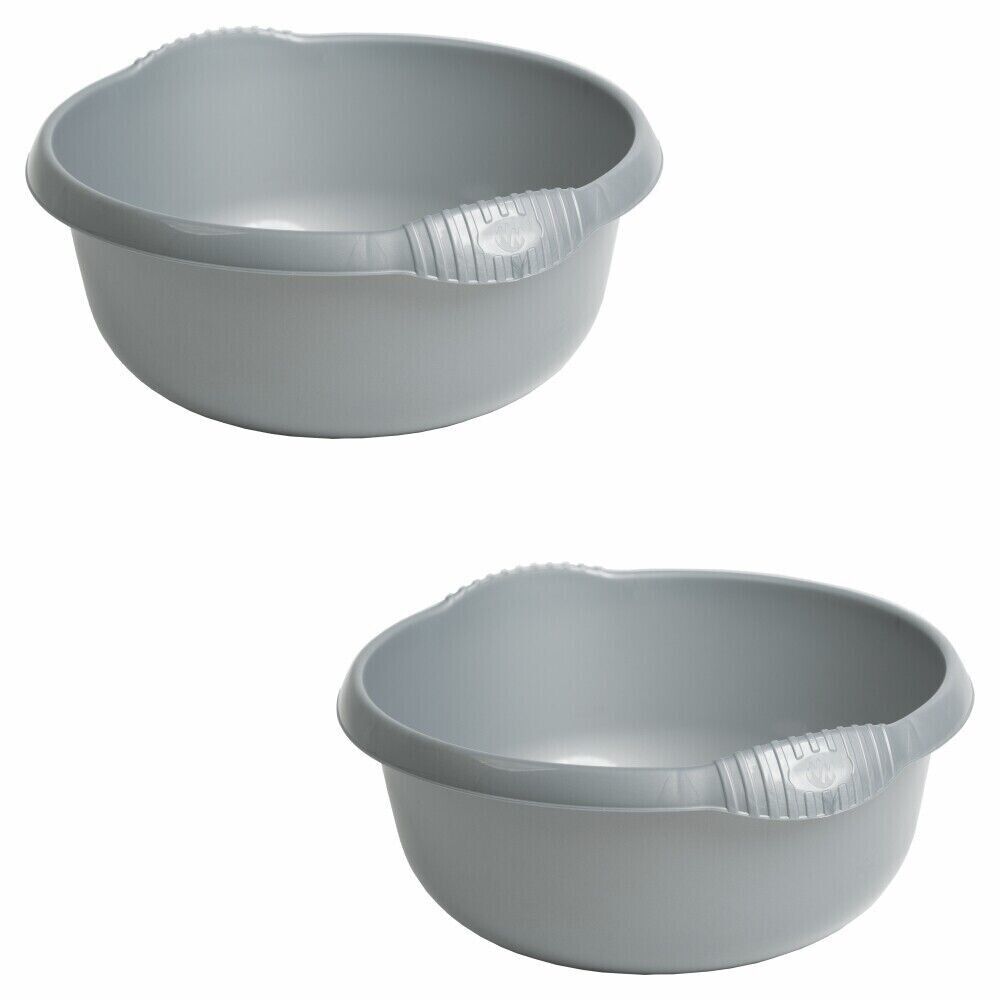 (Pack of 2) Small Round Washing Up Bowl Plastic Kitchen Sink Camping Silver Sage