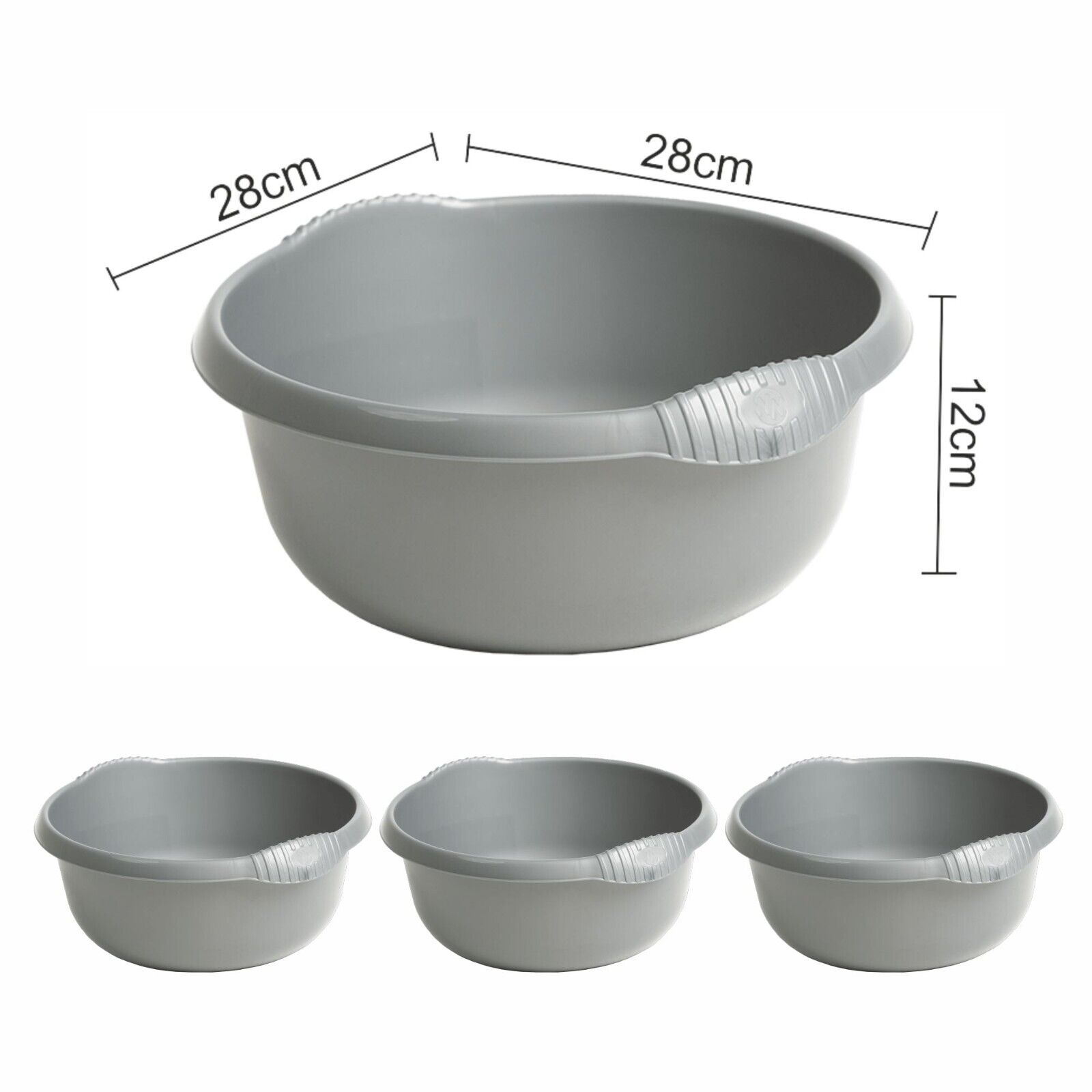(Pack of 4) Silver Washing Up Bowl Small Round Plastic Kitchen Sink Camping 5L